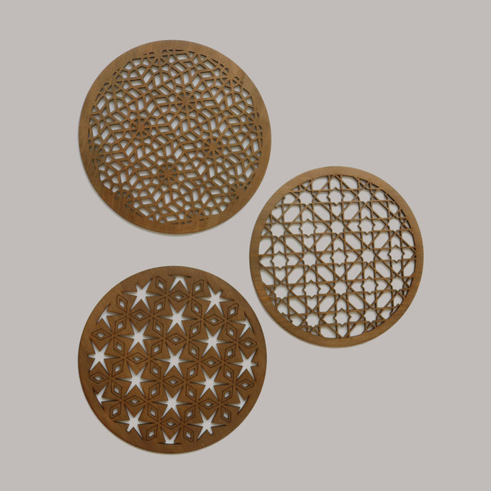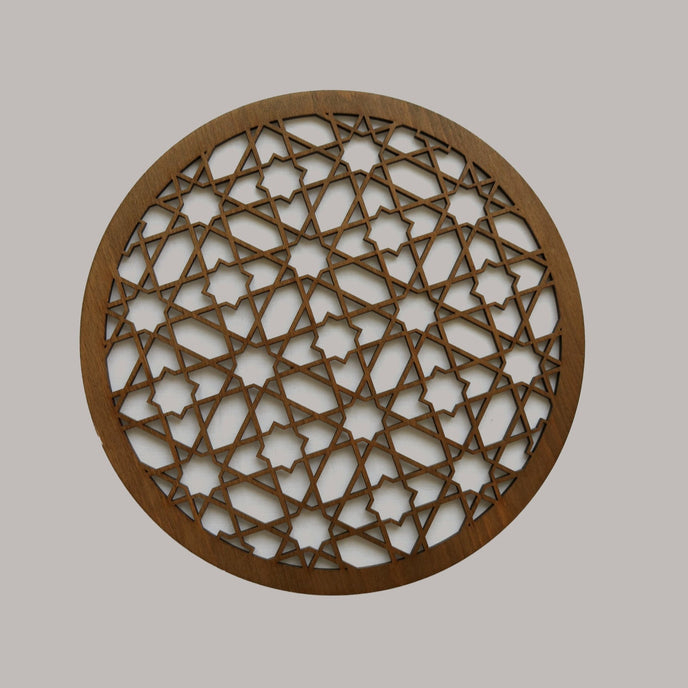 عزز تجربة تناول الطعام الخاصة بك مع مفارش الأطباق الدائرية الخاصة بنا. مصنوعة بدقة باستخدام تقنية القطع الخشبية بالليزر، وتتميز هذه المفارش بتصميم هندسي مذهل من شأنه أن يرفع مستوى أي إعداد طاولة. أضف لمسة من الأناقة والرقي إلى وجباتك. تأتي في مجموعة من 6 مفارش أطباق.
