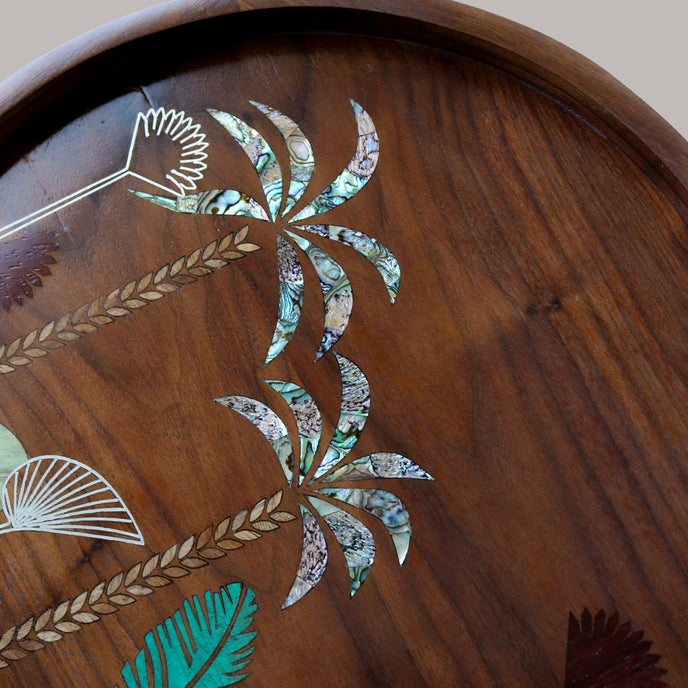 The Palm Trees Tray combines elegant design and functionality with its unique palm tree-inspired wooden and pearl inlay design. The removable plexi surface makes it easy to clean and maintain, perfect for serving snacks or displaying décor. Elevate your home with this beautiful and versatile tray.