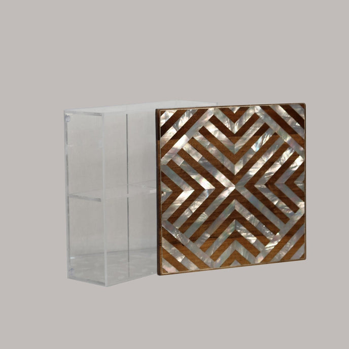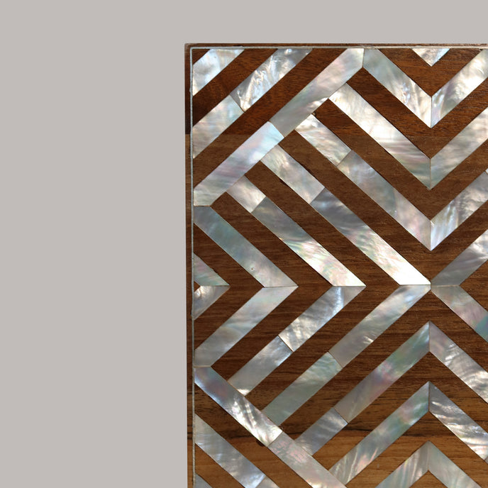 The Pearl Path Box is a stylish box with 4 partitions, showcasing a stunning pearl inlay and wooden design. Great for arranging and showcasing small objects, this box adds a sophisticated element to any space.