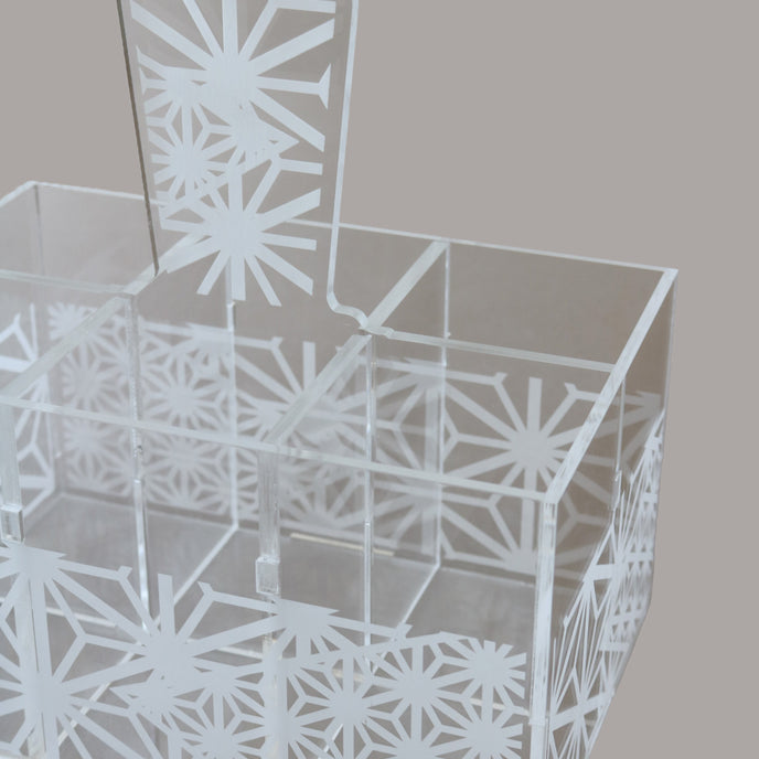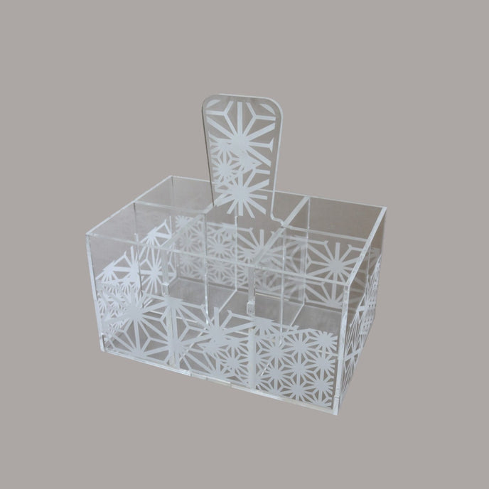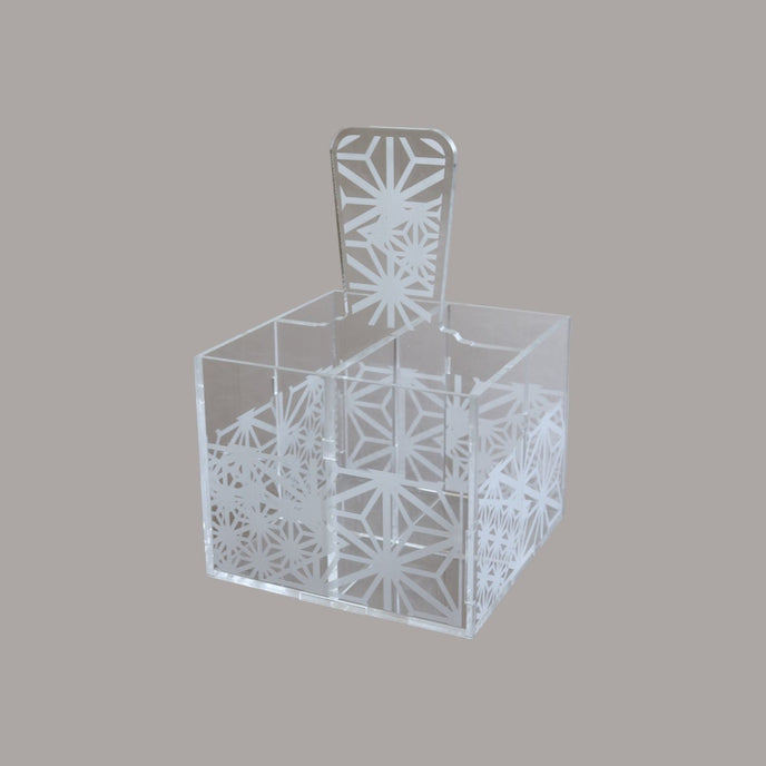 These Plexi cutlery holders are perfect for keeping your utensils organized and easily accessible. Available in 4 and 6-section options, they are made from durable acrylic with laser-printed designs. Easy to clean and suitable for any setting, these holders are a practical addition to your kitchen or dining area.